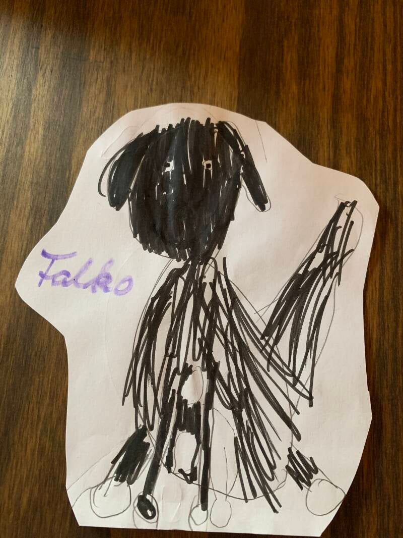 Ich schreibe die richtigen Namen auf. Dann unterhalten wir uns über die Haustiere der Kinder. Zum Schluss werden wunderschöne Bilder meiner Hunde gemalt.